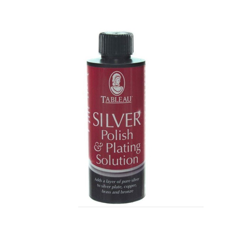 Roztok k postříbrování kovů TABLEAU Silver Plating Solution po nanesení na postříbřený kov, měď nebo mosaz vytváří vrstvu čistého stříbra, která je trvanlivá, neoloupe se a dokonale zakrývá barvu mědi a mosazi. Tento roztok je ideální pro postříbřování a leštění starožitných předmětů, jako sjou stříbrné servisy i svícny. Pro dokonalý výsledek kovový předmět nejprve nechte odmočit v roztoku s Silver Cleaning Plate, který odstraní nánosy staré leštěnky nebo šmouhy a nečistoty.